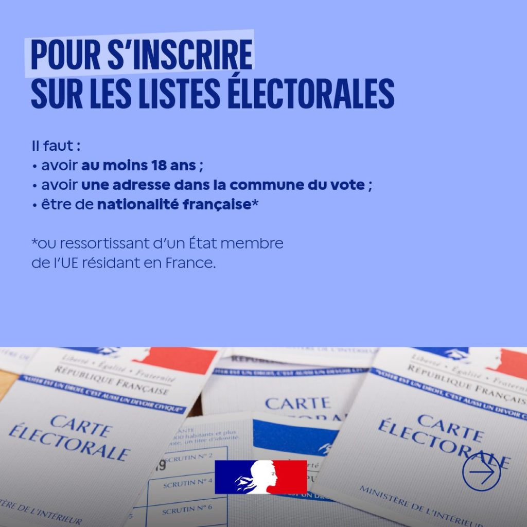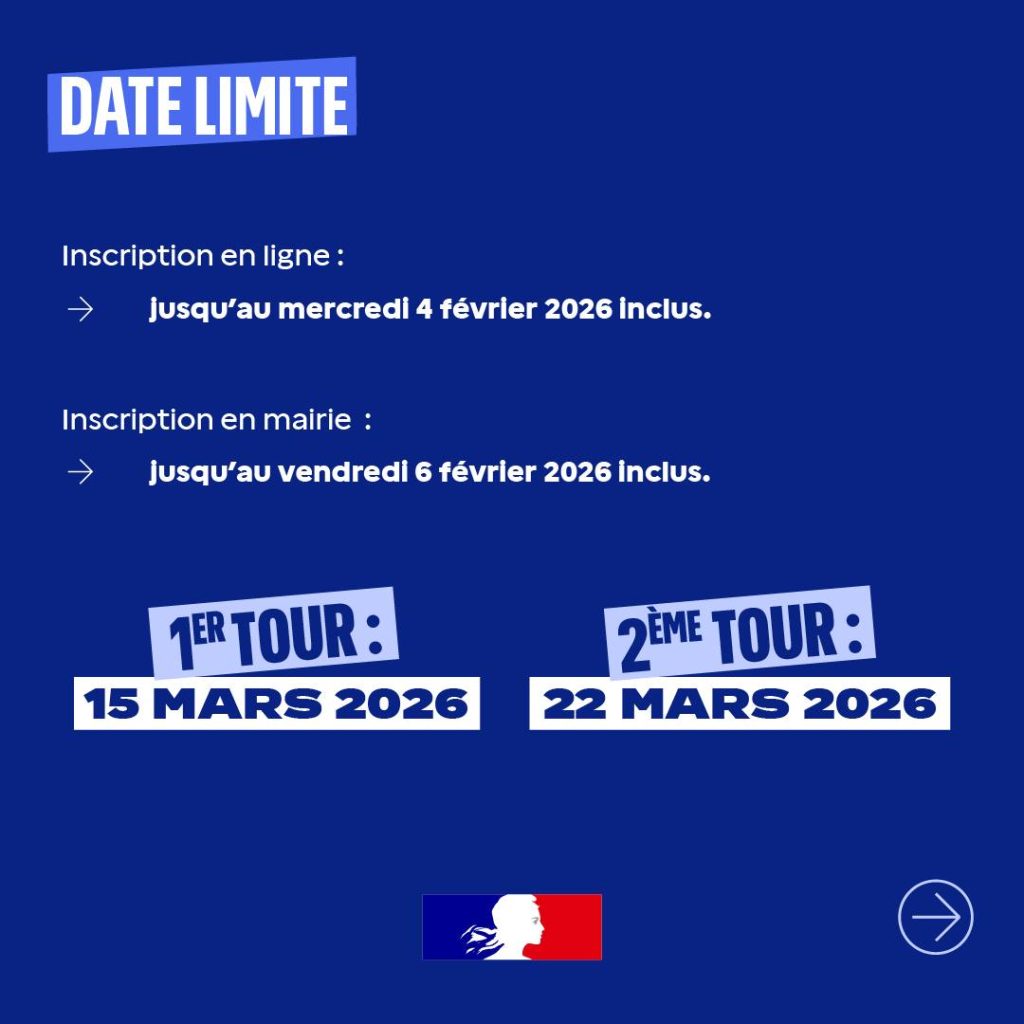 👉 Pour voter aux élections municipales, assurez‑vous d’être inscrit sur les listes électorales : jusqu’au 4 février 2026 en ligne, ou jusqu’au 6 février en mairie.